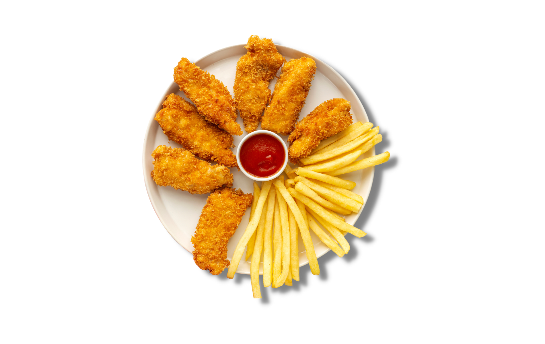 nuggets 10szt, frytki, surówka, sos do wyboru